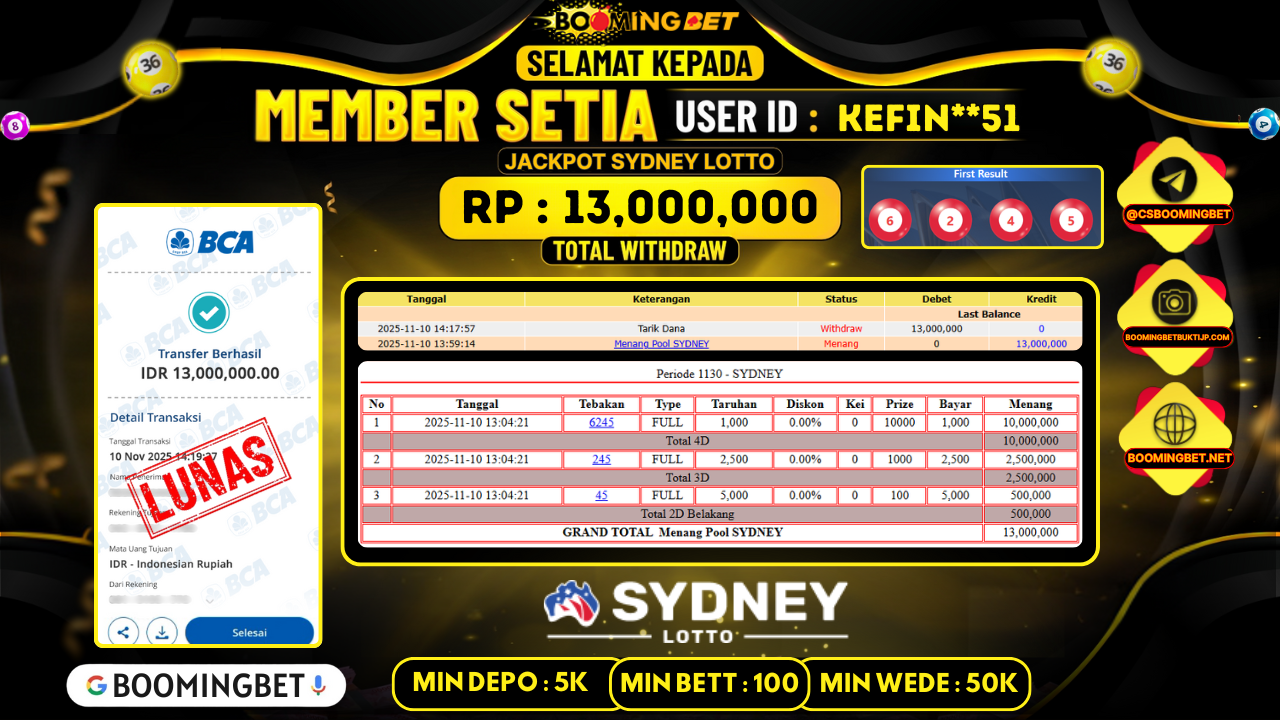 JACKPOT TOGEL!! MENANG BESAR DIPASARAN SYDNY LOTTO SEBESAR RP.13,000,000 !! BOOMINGBET DIBAYAR SECEPAT KILAT