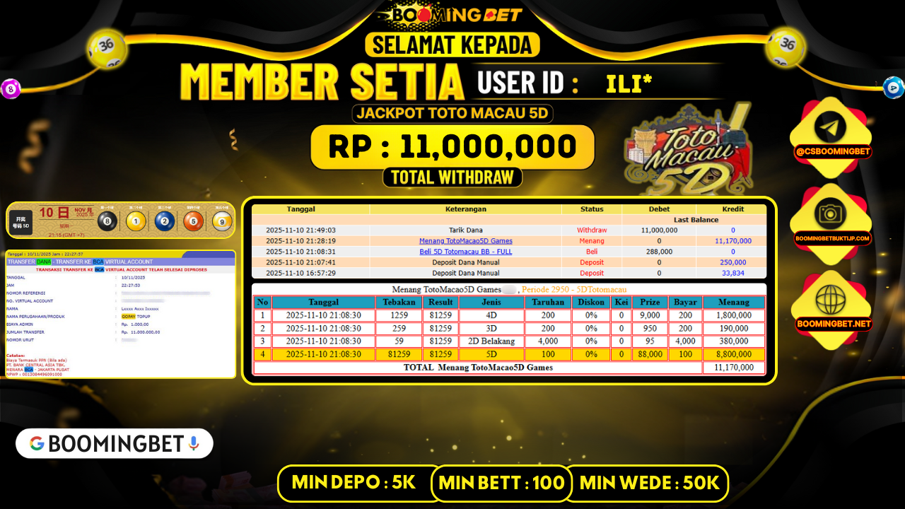 JACKPOT TOGEL!! MENANG BESAR DIPASARAN TOTO MACAU 5D SEBESAR RP.11,000,000 !! BOOMINGBET DIBAYAR SECEPAT KILAT
