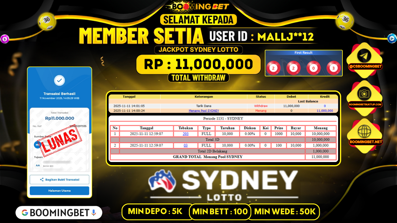 JACKPOT TOGEL!! MENANG BESAR DIPASARAN SYDNEY LOTTO SEBESAR RP.11,000,000 !! BOOMINGBET DIBAYAR SECEPAT KILAT