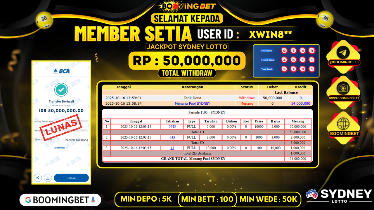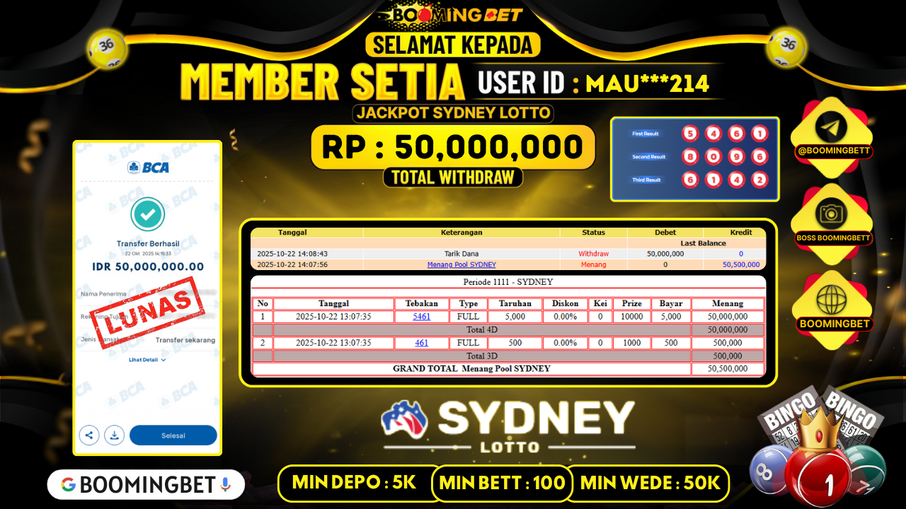JACKPOT TOGEL !! MENANG BESAR DIPASARAN SYDNEY LOTTO SEBESAR RP.50,000,000 !! BOOMINGBET DIBAYAR SECEPAT KILAT