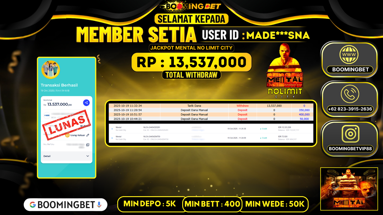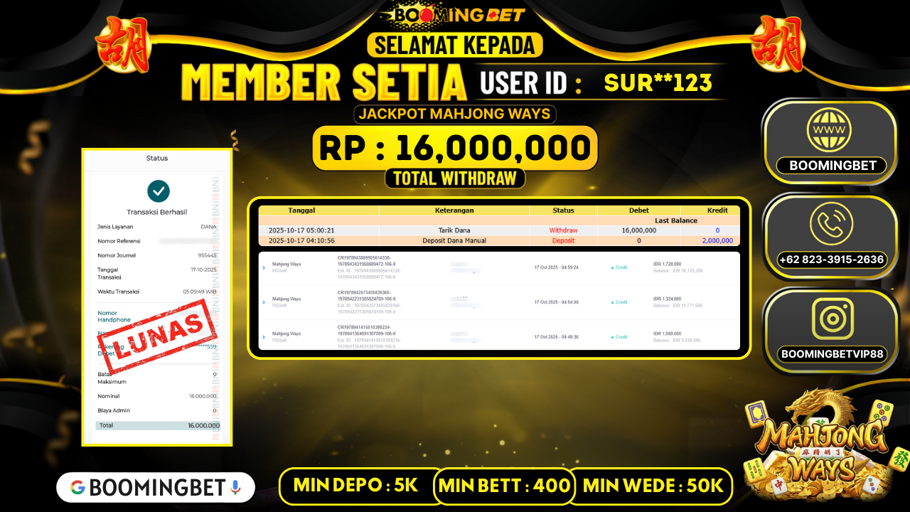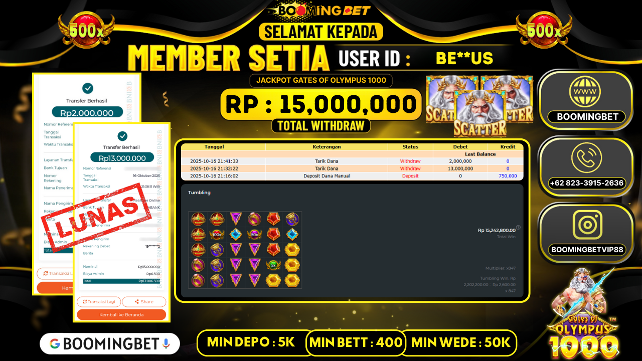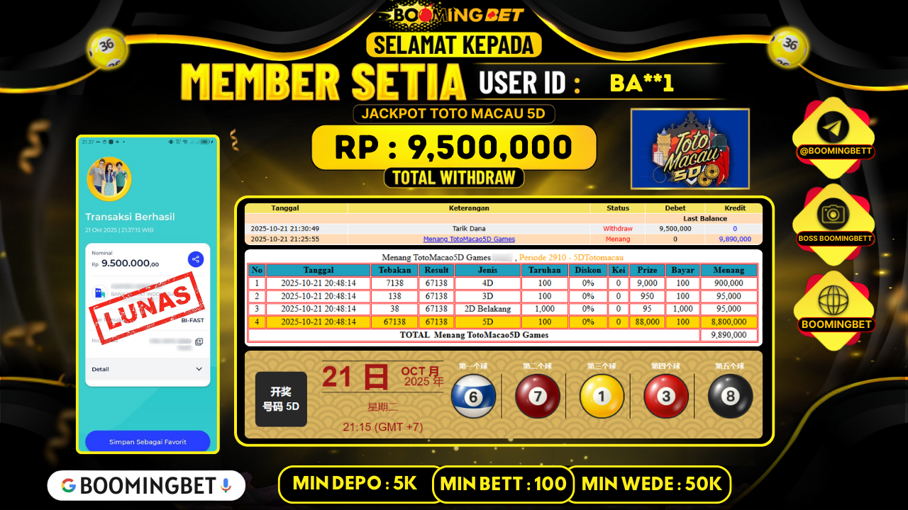 Selamat kepada ID:mau***214 berhasil mendapatkan kemenangan DIPASARAN SYDNEY LOTTO SEBESAR RP.50,000,000 Pihak BOOMINGBET Mengucapkan Terima Kasih Kepada Pemenang karena Sudah mempercayakan kami sebagai SITUS PERMAINAN ONLINE TERPERCAYA yang membayar kemenangan Member Hingga Lunas. Masih Ragu Dengan BOOMINGBET ? Dimana Bandar Online sekarang yang Terpercaya seperti BOOMINGBET ? Bandar Yang membayar kemenangan Member Tanpa Tele-tele. Jadi anda bermain di BOOMINGBET Tidak perlu khawatir pada Situs BOOMINGBET karena kemenangan berapa pun pasti dibayar lunas kepada pemenang. BOOMINGBET Bukan bandar online kaleng – kaleng bosku tapi Pasti Bayar !!