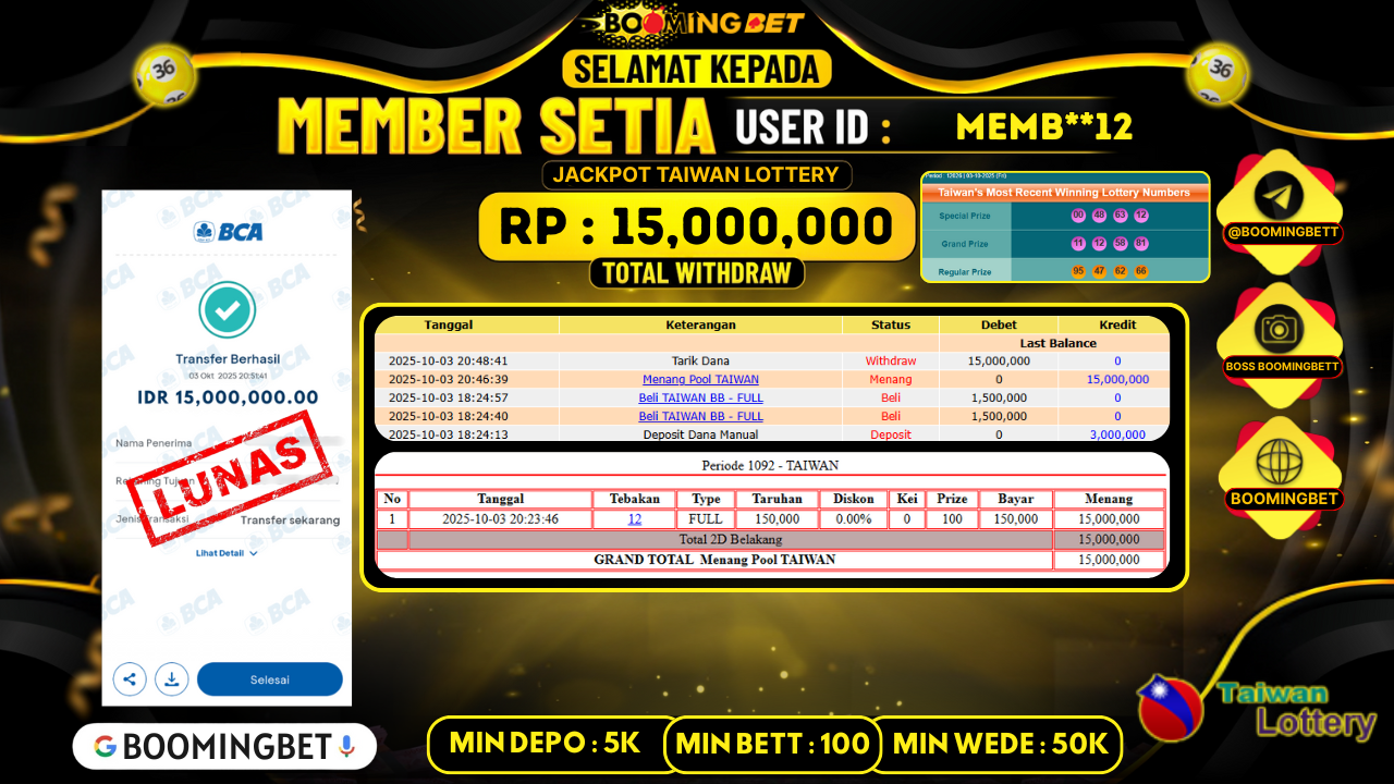 Selamat kepada ID:sae***70 berhasil mendapatkan kemenangan DIPERMAINAN MAHJONG WAYS SEBESAR RP.10,093,000 Pihak BOOMINGBET Mengucapkan Terima Kasih Kepada Pemenang karena Sudah mempercayakan kami sebagai SITUS PERMAINAN ONLINE TERPERCAYA yang membayar kemenangan Member Hingga Lunas. Masih Ragu Dengan BOOMINGBET ? Dimana Bandar Online sekarang yang Terpercaya seperti BOOMINGBET ? Bandar Yang membayar kemenangan Member Tanpa Tele-tele. Jadi anda bermain di BOOMINGBET Tidak perlu khawatir pada Situs BOOMINGBET karena kemenangan berapa pun pasti dibayar lunas kepada pemenang. BOOMINGBET Bukan bandar online kaleng – kaleng bosku tapi Pasti Bayar !!